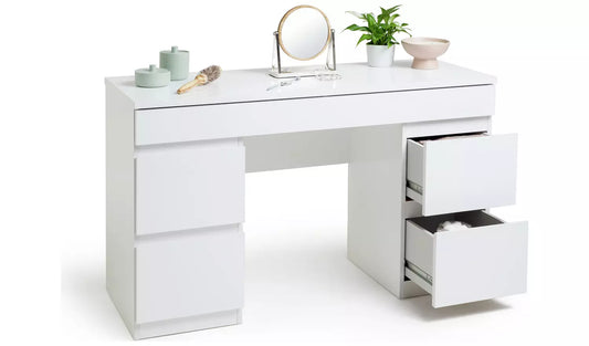 Jenson 5 Drawer Dressing Table Desk - White Gloss
