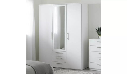 Brisbane 3 Door 3 Drawer Wardrobe - White