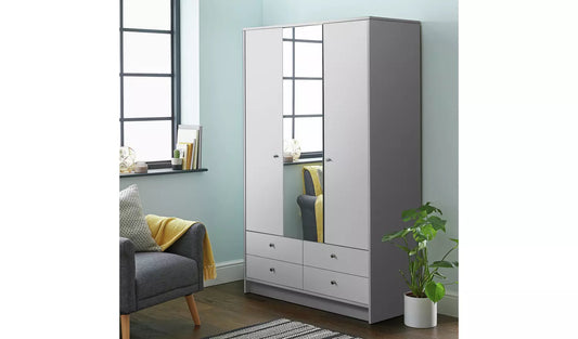 Malibu 3 Door 4 Drawer Mirror Wardrobe - Grey