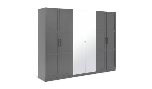 Habitat Munich Panelled 6 Door Mirror Wardrobe - Anthracite