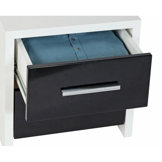 Assembled Broadway 2 Drawer Bedside Table - Black Gloss & White