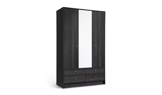 Malibu 3 Door 4 Drawer Mirror Wardrobe - Black Oak