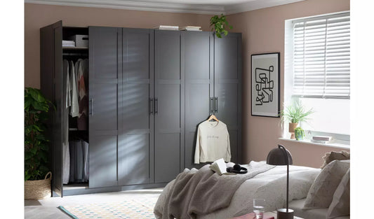 Habitat Munich Panelled 6 Door Wardrobe - Anthracite