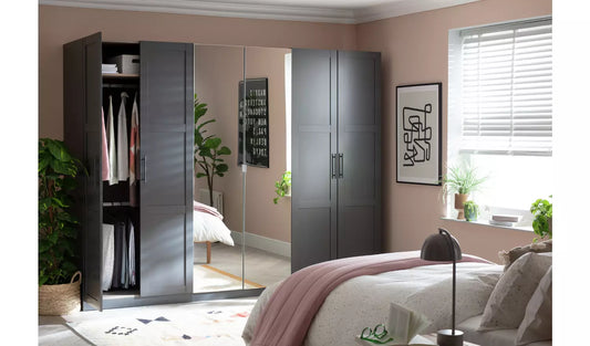 Habitat Munich Panelled 6 Door Mirror Wardrobe - Anthracite