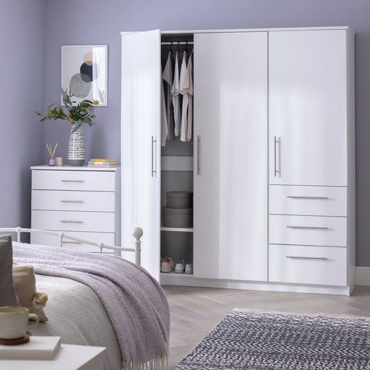 Normandy 3 Door 3 Drawer Extra Large Wardrobe - White
