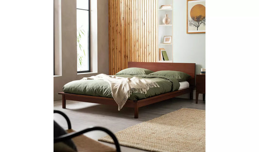 Habitat Akio Double Wooden Platform Bed Frame - Walnut
