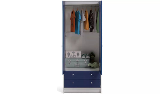 Assembled Malibu Kids 2 Door 2 Drawer Wardrobe White & Blue