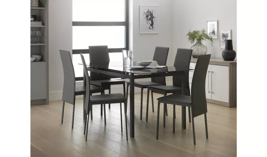 Lido Glass Extending Dining Table & 6 Grey Chairs