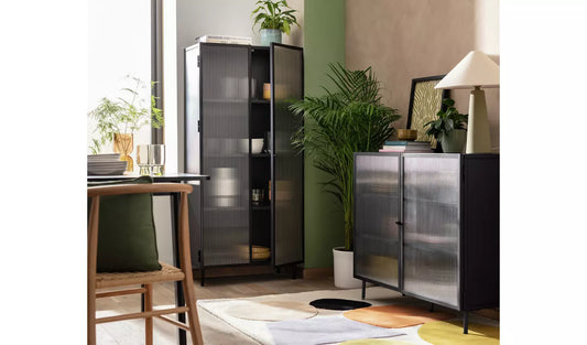 Assembled Habitat Morillo 2 Door Glass Display Cabinet - Blue