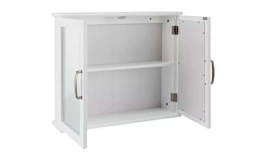 Assembled Tongue & Groove 2 Door Mirrored Cabinet - White