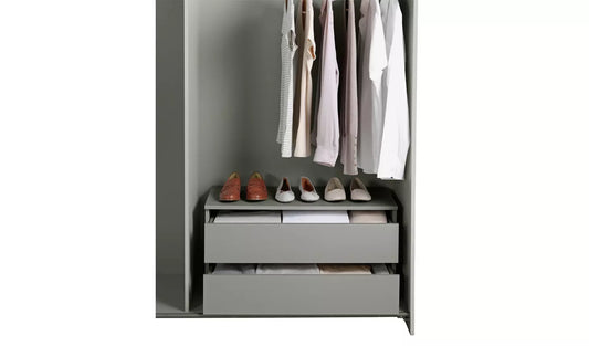 Covered Double Wardrobe with Storage - Grey